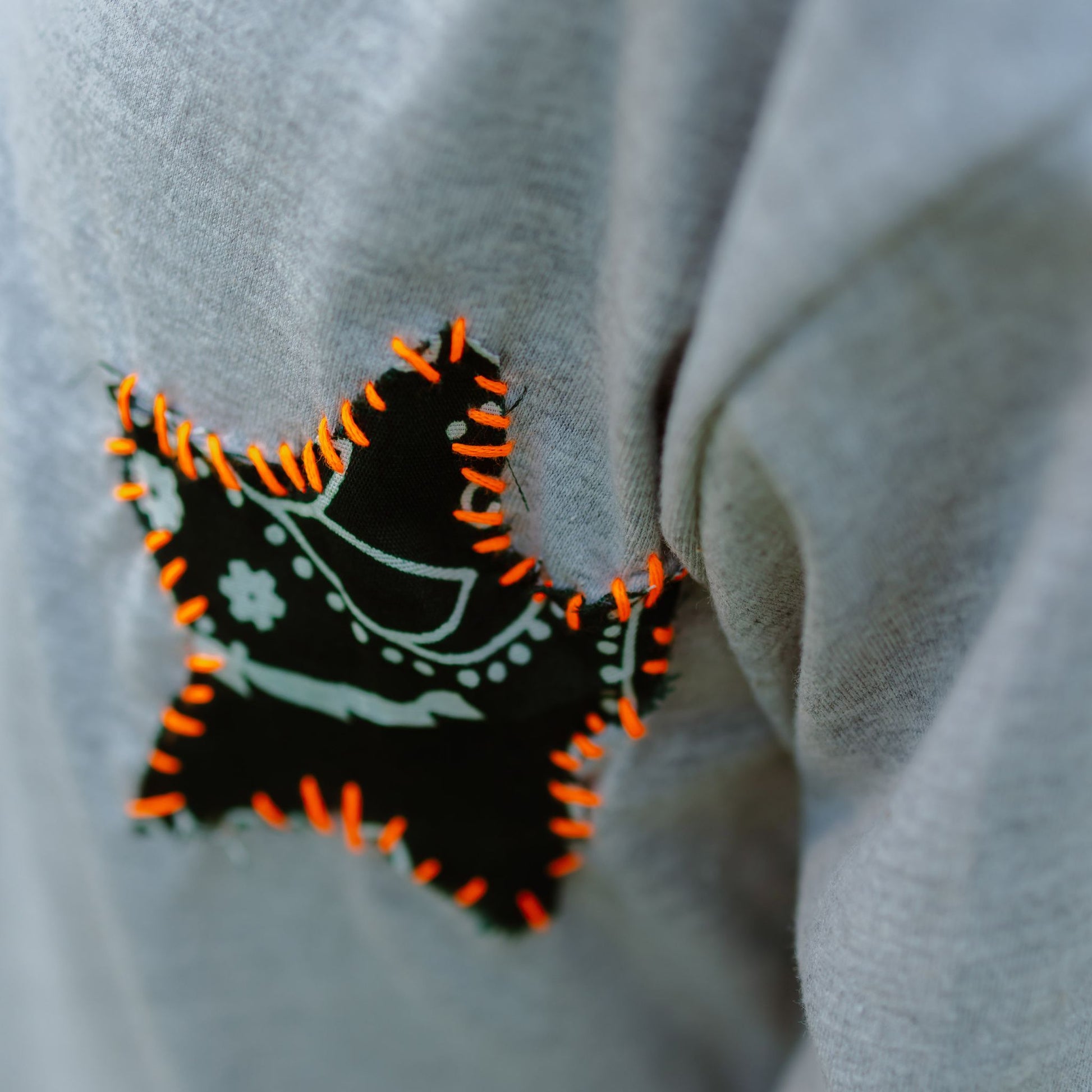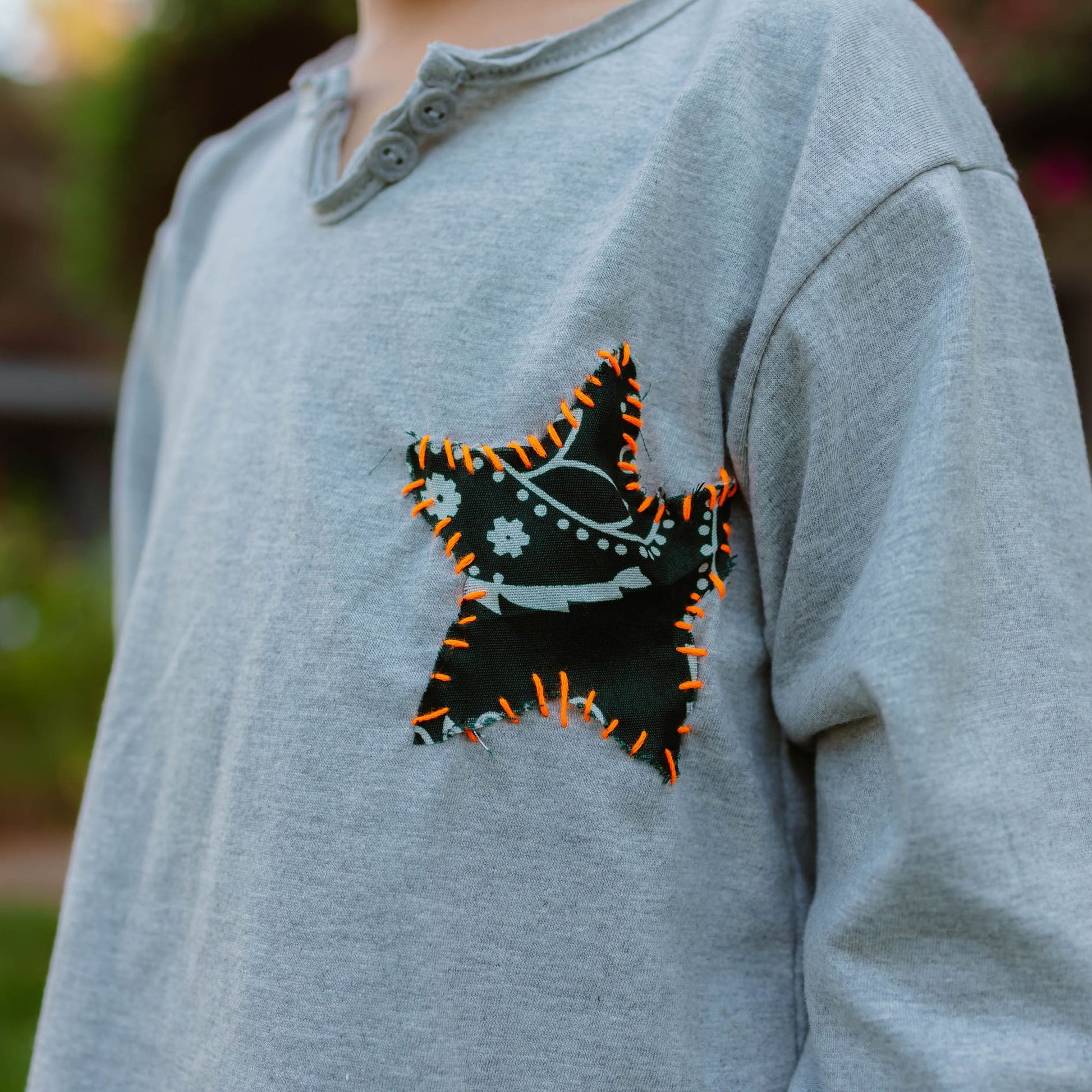 - Bandana Star Patch: A stylized star patch crafted from contrasting bandana-print fabric is stitched onto the chest, giving it a playful, handmade feel.