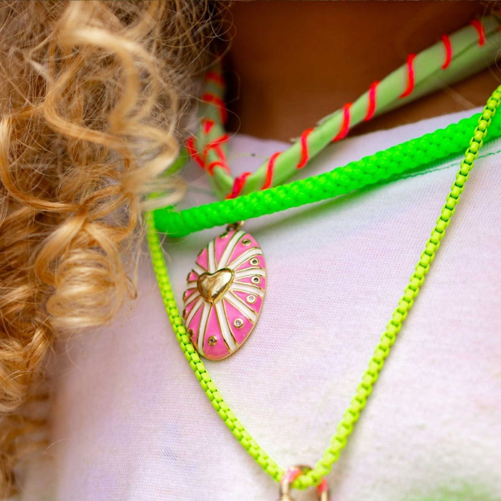 Hand-stitched bandana necklace finished with a playful heart pendant. The perfect pop of color and charm for everyday style - choose your vibe from Aqua Blue, Baby Pink, Teal, Curious Lime, Tie Dye, Purple, Papaya Orange, or Canary Yellow.