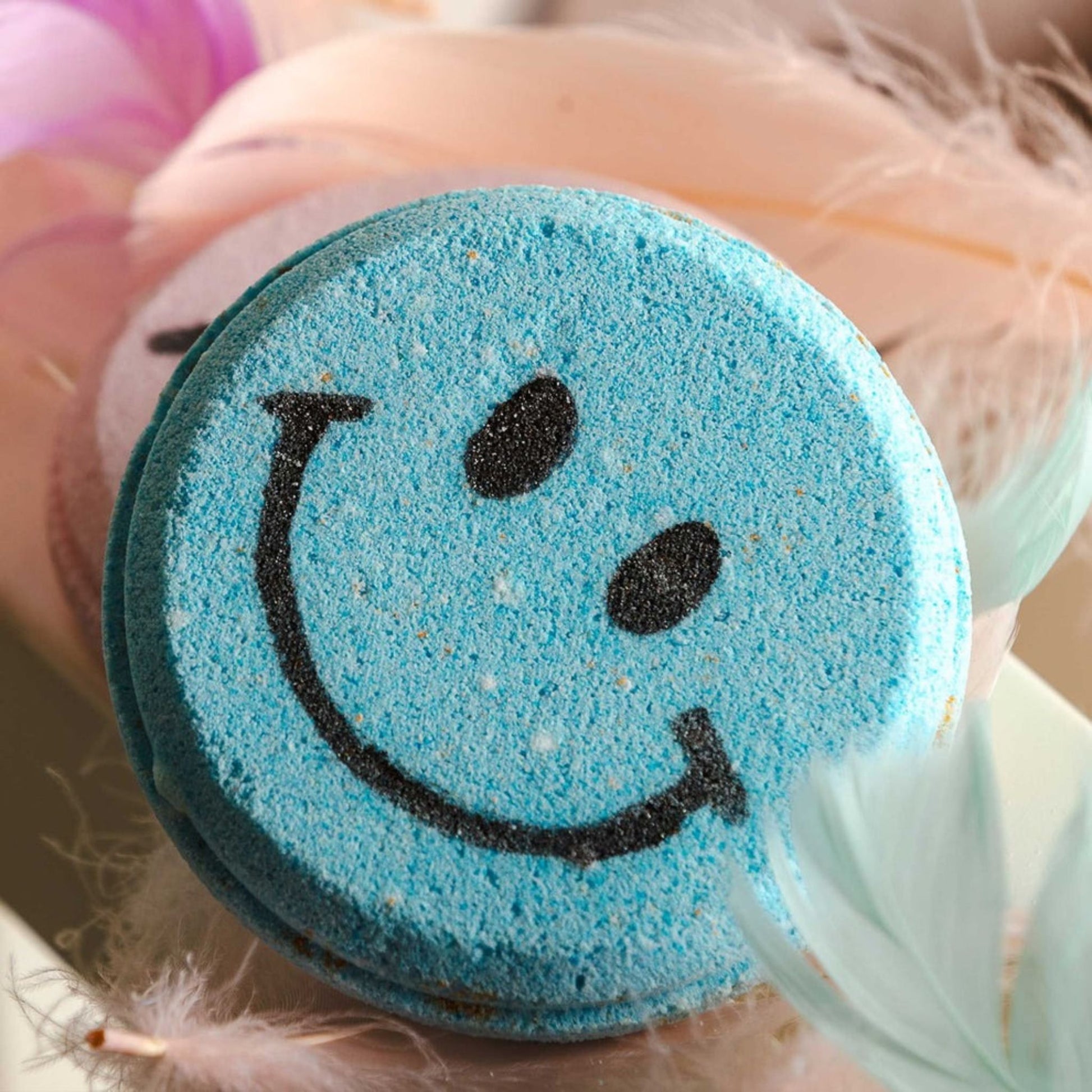 Bring cool, calming vibes to bath time! This handmade blue smiley bath bomb fizzes into gentle bubbles and soft color, perfect for a relaxing soak that ends with a smile.