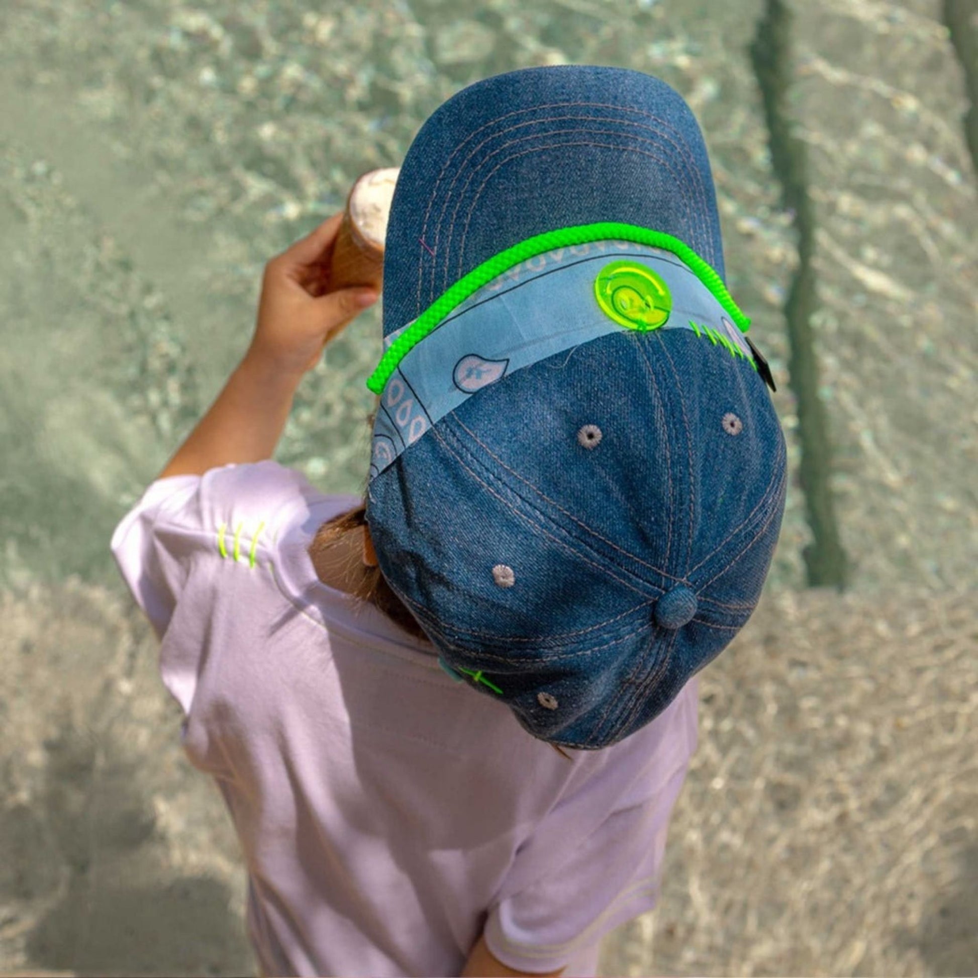 Cool denim cap designed for boys, featuring hand-stitched embroidery, playful charms, and a bandana accent. Perfect for ages 3 to 8 years - add your own style and fun vibe.