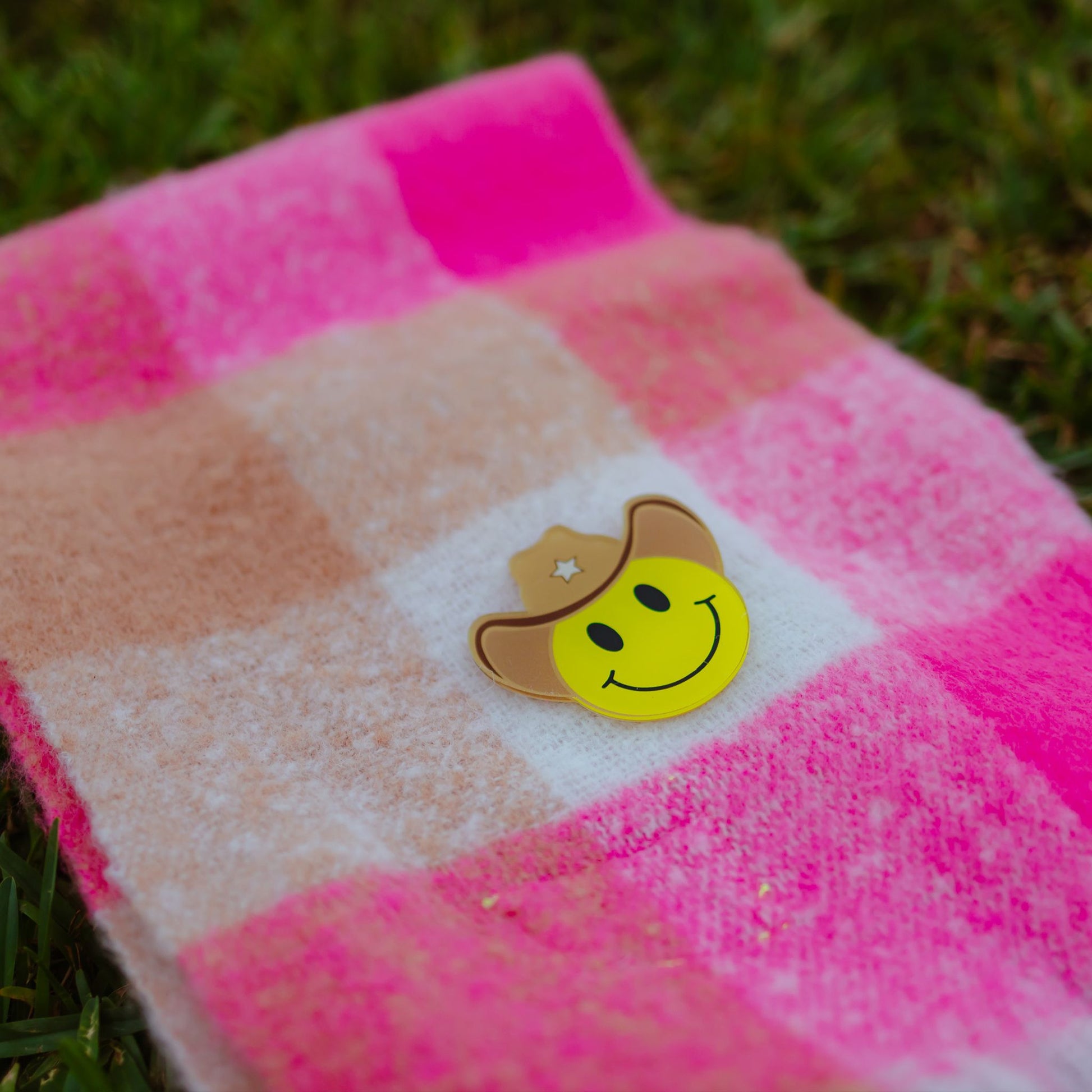 Add a pop of colour and personality to little winter outfits with the Checkered Wilder Than The West Kid Scarf in Bright Pink & Sand. Designed with a soft woven check pattern, playful fringe edges, and finished with a cute western-style smiley pin, this lightweight scarf is perfect for everyday warmth, fun styling, and adorable gifting.