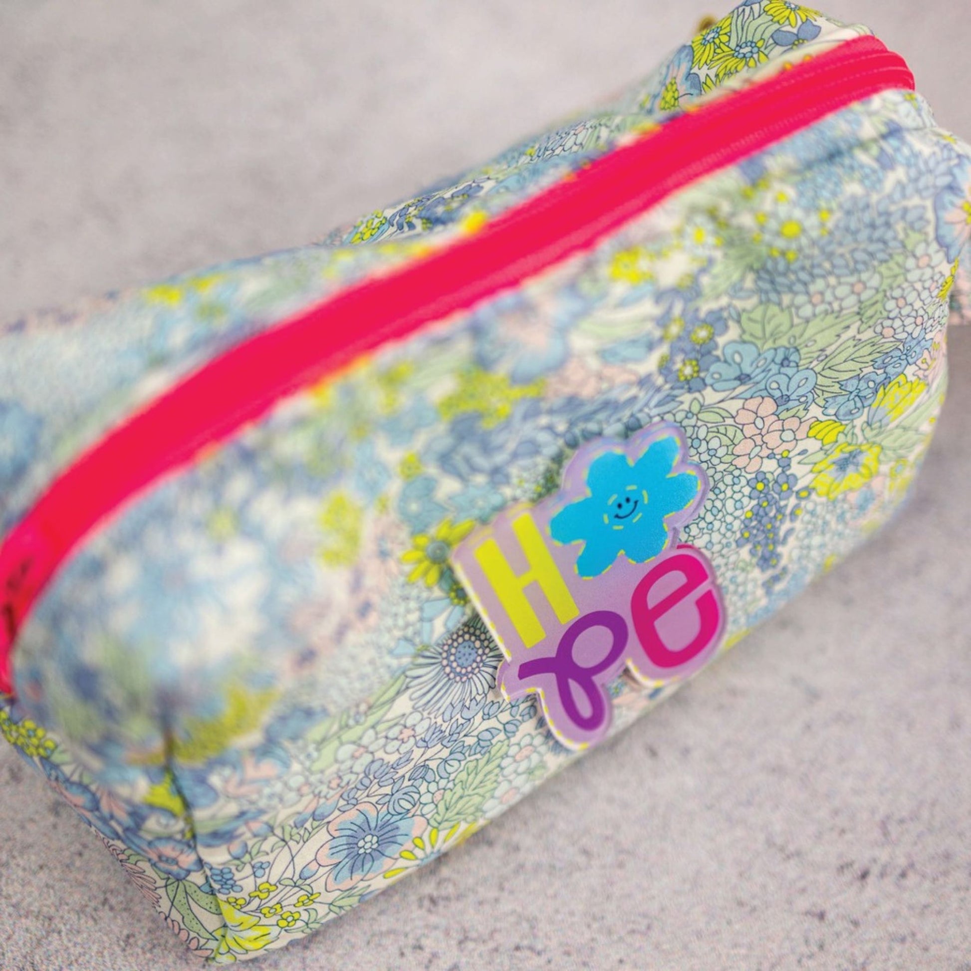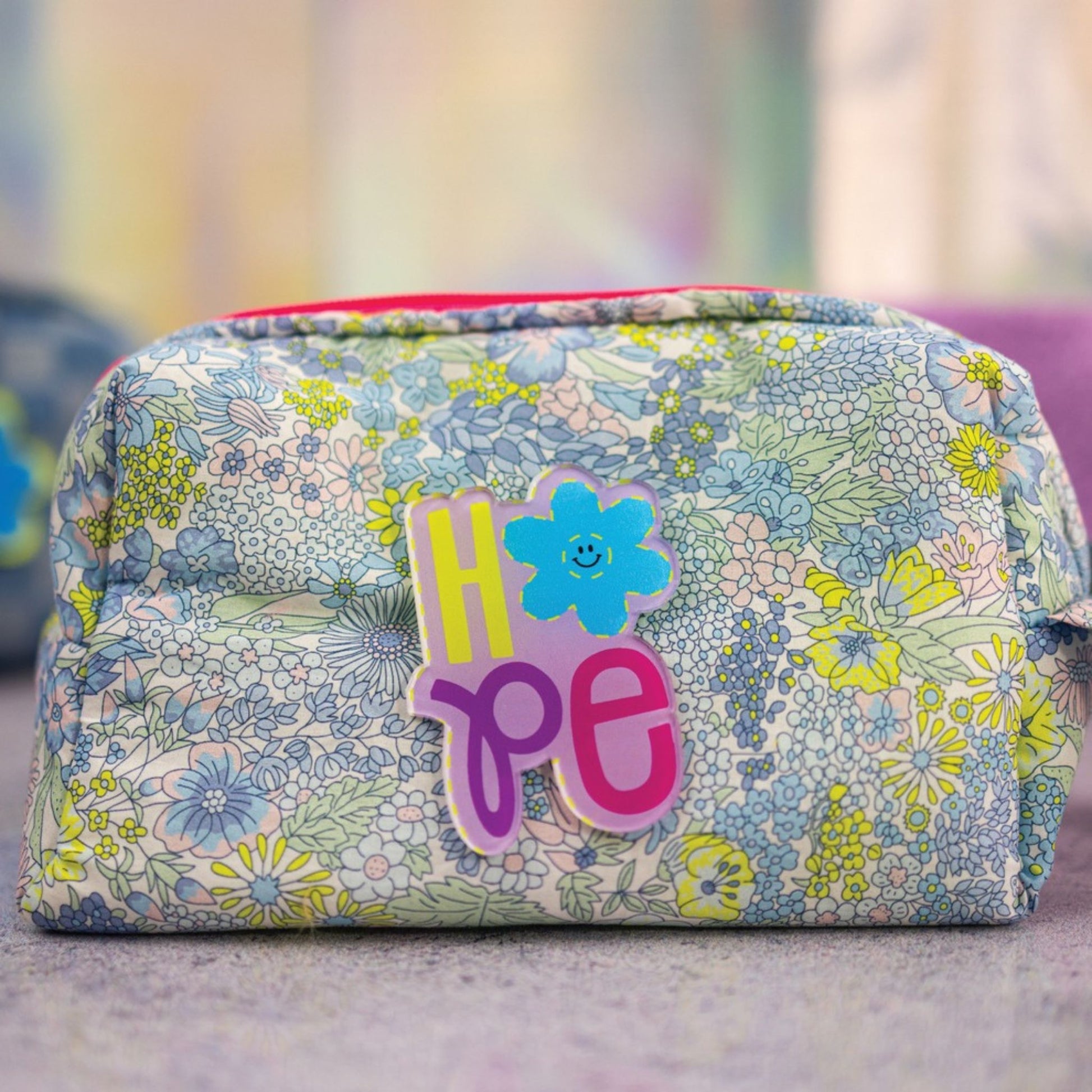 Add a touch of vintage charm to your essentials with this adorable Floral Puffy Pouch! Featuring a retro-inspired ditsy floral print and a bright hot pink zipper, this bag is both stylish and functional. It includes a fun, removable "Hope" pin with a smiling flower. Perfect as a compact pencil case, makeup bag, or organizer for small items. Its soft, puffy design makes it a comfortable, customizable accessory and a great gift.