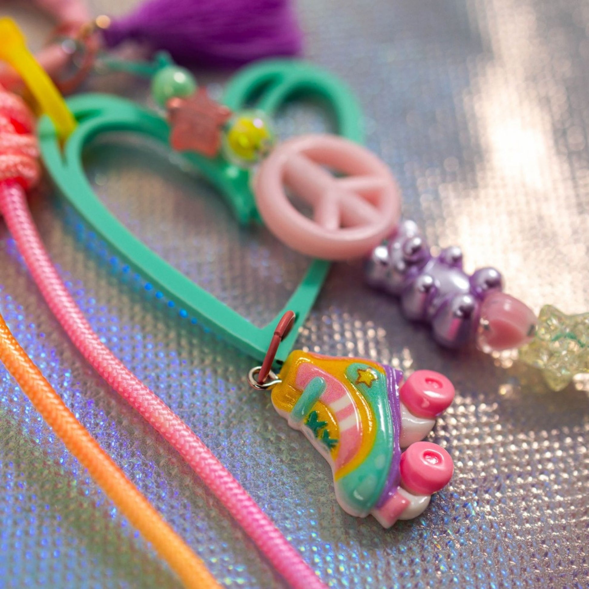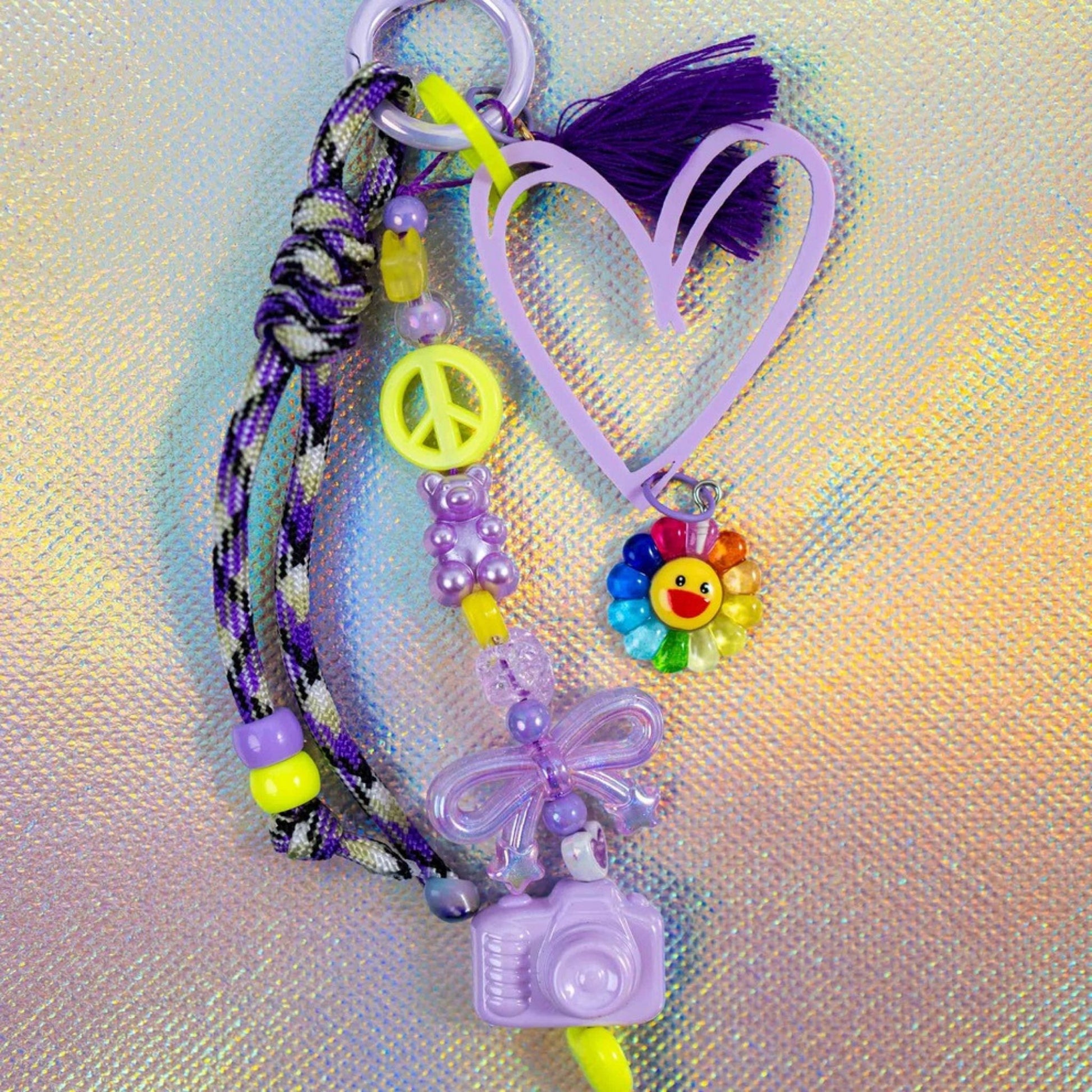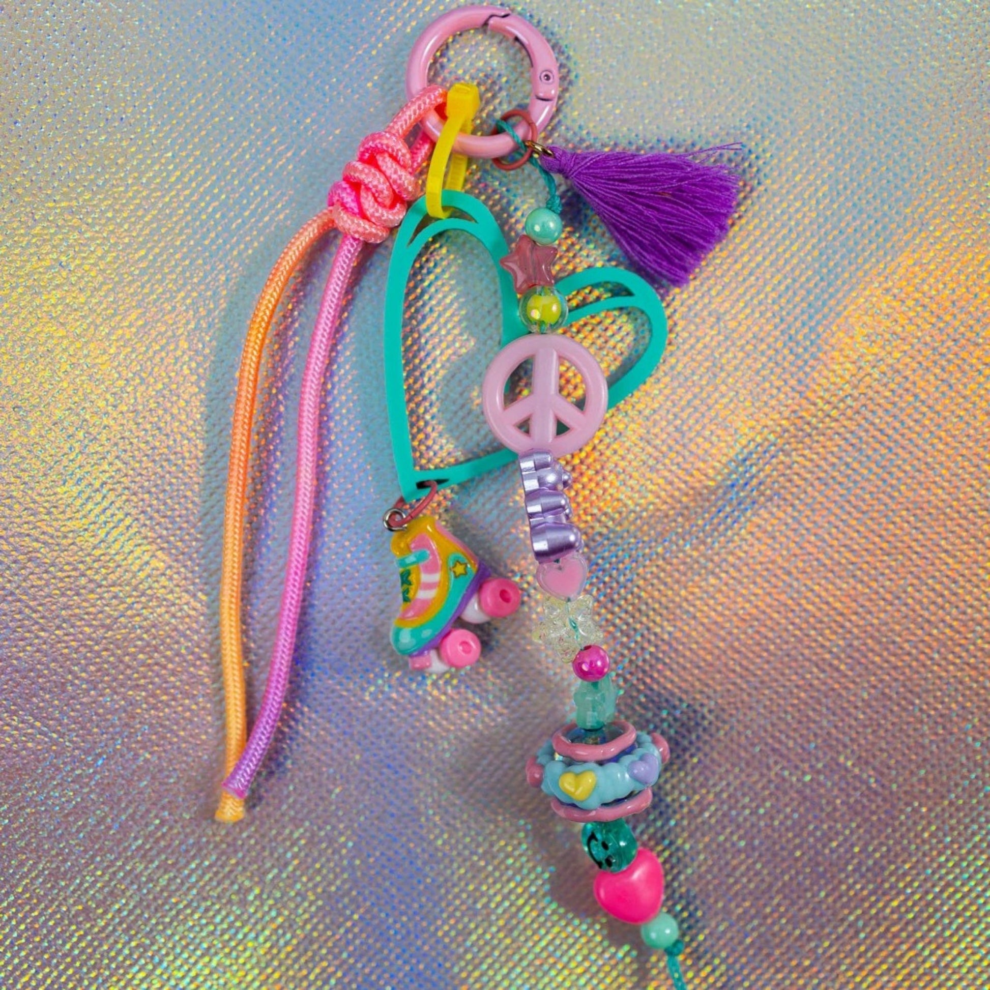 Step back into the '90s with our super cute Graffiti Heart Key Charm collection! Each charm features a playful heart cutout and is loaded with nostalgic flair. Choose from an array of fun, vibrant charms - flower charm, miniature roller skates, retro cameras, or cassette tapes.