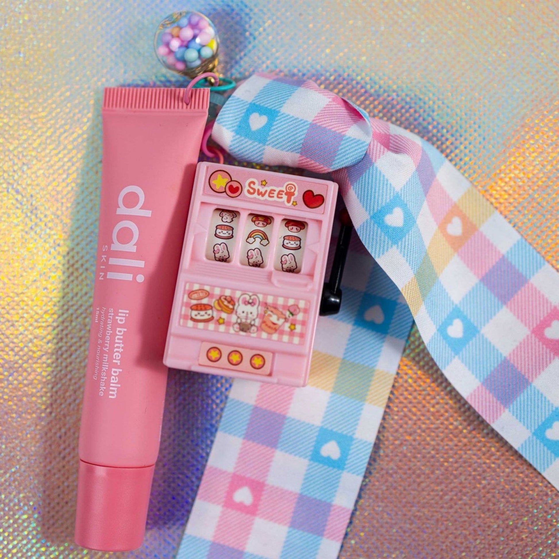 Complementing the charm is the luscious Strawberry Milkshake Dali Lip Butter Balm. This balm provides superior hydration and nourishment with a creamy, authentic strawberry milkshake flavor. The rich, buttery formula leaves your lips soft, comfortable, and sweetly scented.