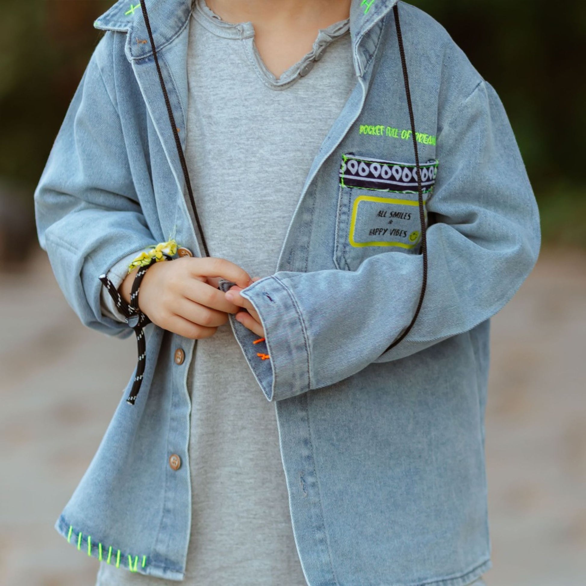 - 'Pocket Full of Dreams' Patch: The chest pocket is adorned with a custom woven label, including the motto 'Pocket Full of Dreams' and 'All Smiles Happy Vibes' patches (as seen in the detailed images), injecting a positive, Y2K/Indie aesthetic.